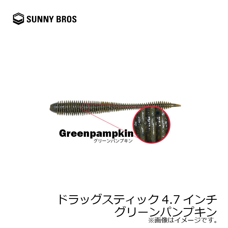 【お買い物マラソン】 サニーブロス ドラッグスティック 4.7インチ グリーンパンプキン /バスワーム スティックベイト サニブロ 価格:950円 |
